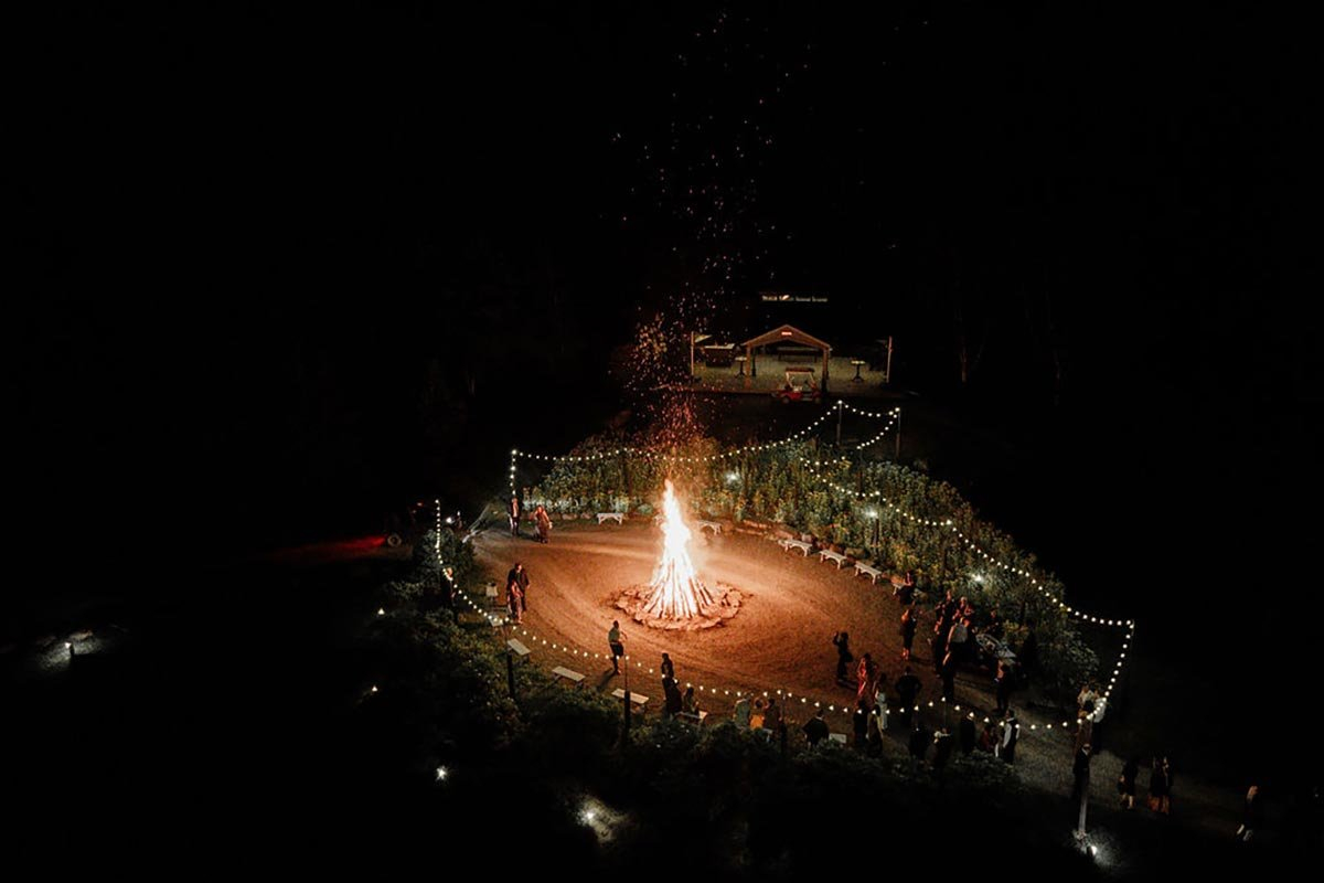When the last dance winds down, we’re not done yet. Opt for a large bonfire experience you’ve never experienced before. There’s something primal and beautiful about gathering around a roaring fire under a canopy of stars, sharing stories, and making s’mores.