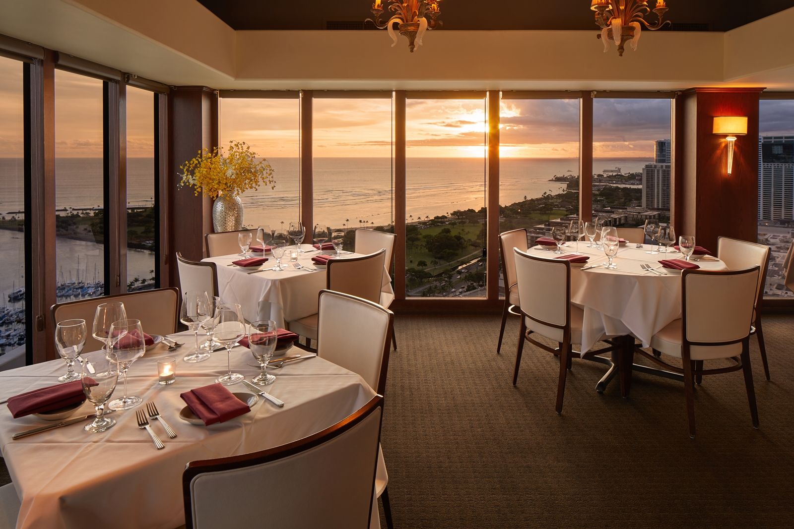 Located on the 36th floor of the Ala Moana Hotel, The Signature Prime Steak & Seafood restaurant is the new home to a space known historically for memorable evenings with Oahu's most epic views. Upon entering from the elevator on Ala Moana Hotel's top floor, each new diner will be enthralled by crystal chandeliers and live music played on The Signature's white grand piano. When it comes to choosing a table, the opportunities are endless: The intimate bar, piano lounge, vintage-style ocean view booths, an exclusive experience in our wine cellar, or any of our luxurious mountain room or ocean room tables.From first sip to last bite, prepare to be wowed by our Signature combination of customer service and hand-selected quality menu options. Enjoy selecting from our thorough wine list, which has been crafted to pair perfectly with all our chef's creations.Please be our guest. Take the journey to share an evening with us that you will remember forever.