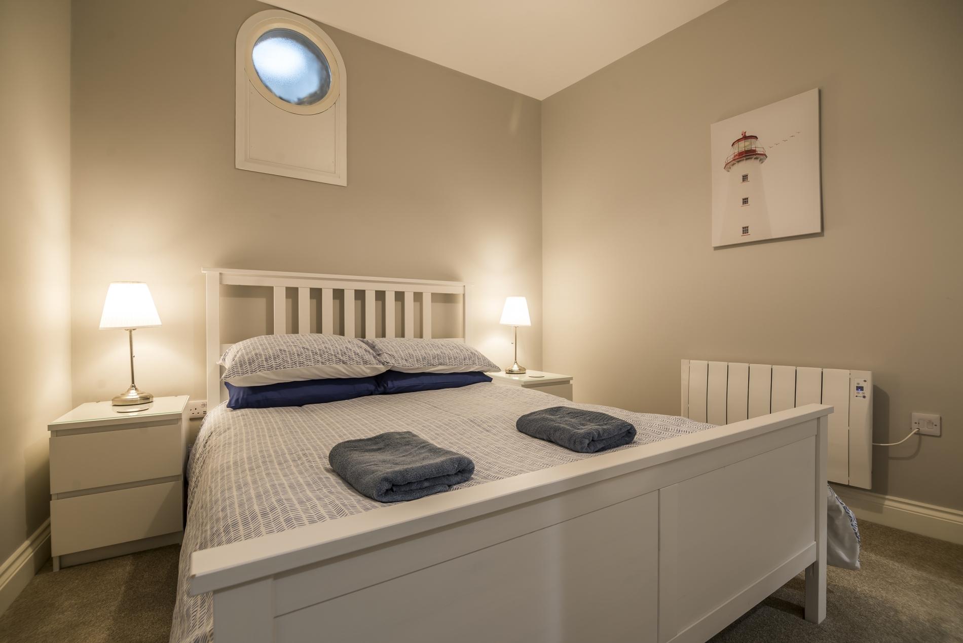 If being close to the ocean is your priority, this home delivers in spades. Not only is this apartment situated directly across from Tenby's North Beach, but the private patio has breathtaking views of the harbour and beyond. Morning, noon or night, there's no better spot to sit and relax, listening to the crash of the waves, observing the boats and watching the sun sink over the water. It's pure bliss, as far as we're concerned, and it's made even better by the sleek interior awaiting you in the living area. There are fun nautical elements dotted about, yet even with the seaside motif, the design never feels passe. In fact, we think the whole thing is rather smart, with a dark blue kitchen, luxe rainfall showers in the glossy bathrooms and even a wine fridge for your bottles of bubbly. When you're not at home soaking up the view or lounging on the sofa, spend your time wandering through Tenby's walled centre, admiring the colourful houses, browsing the local boutiques and dining at the many delicious eateries. And with five beaches to tickle your fancy, you'll have plenty of options when it comes to sprawling in the sand. Our favourite is Castle Beach, a five-minute walk away.