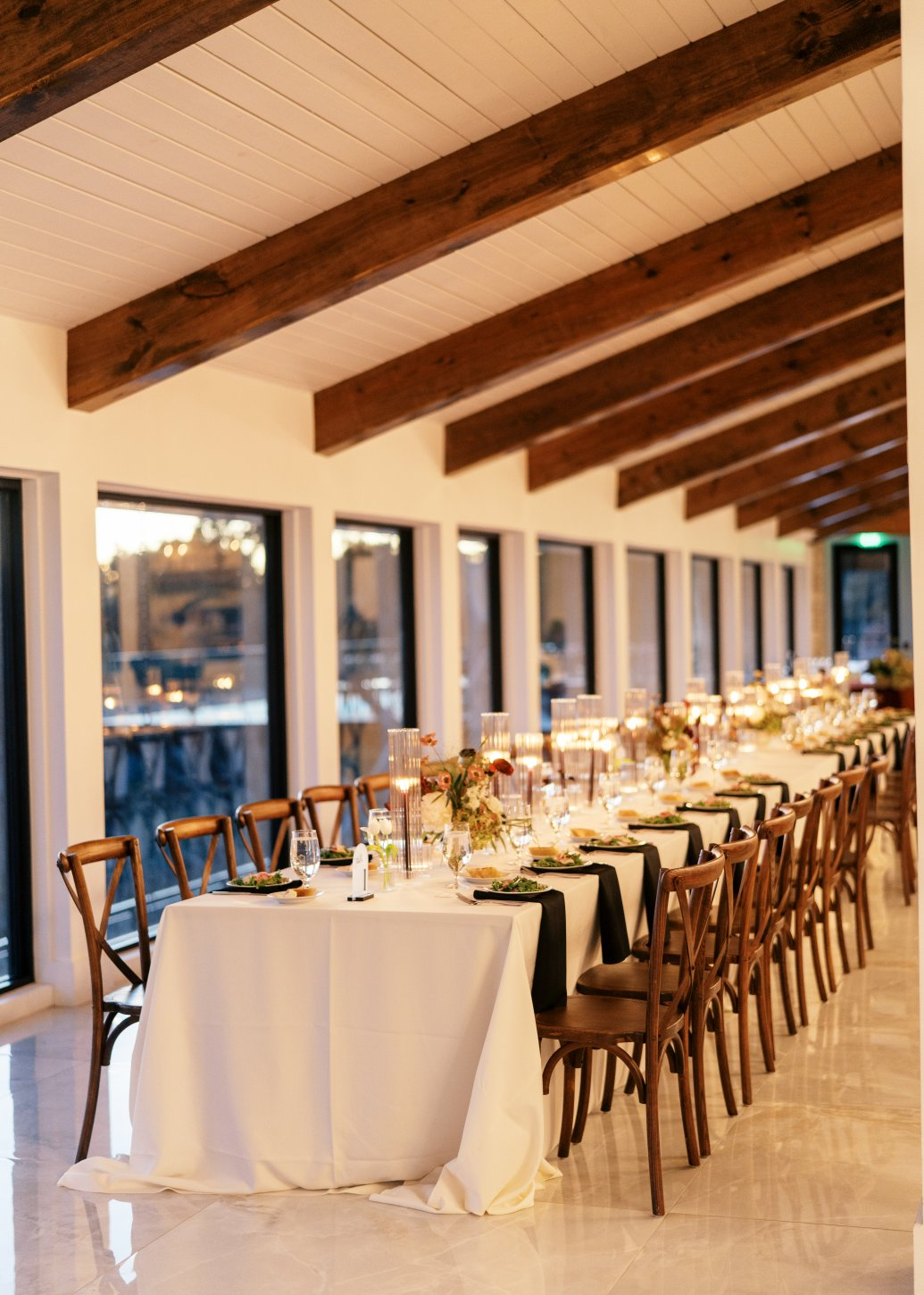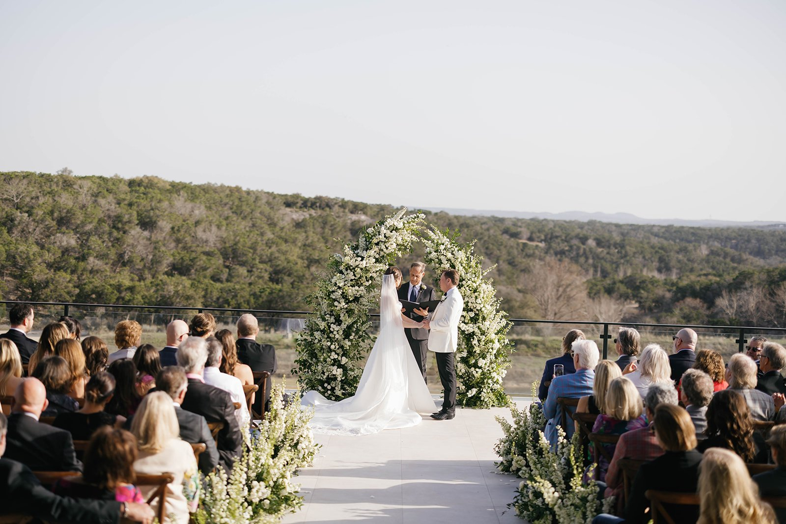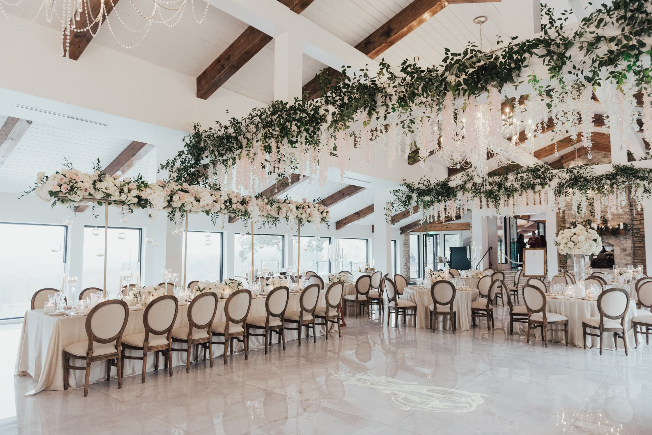 With a ceremony deck that overlooks miles of Hill Country and an 8-acre lake, this space creates a magical and intimate setting for any occasion. The inside of our hall is lined with floor-to-ceiling windows that overlooks the lake and rolling hills.