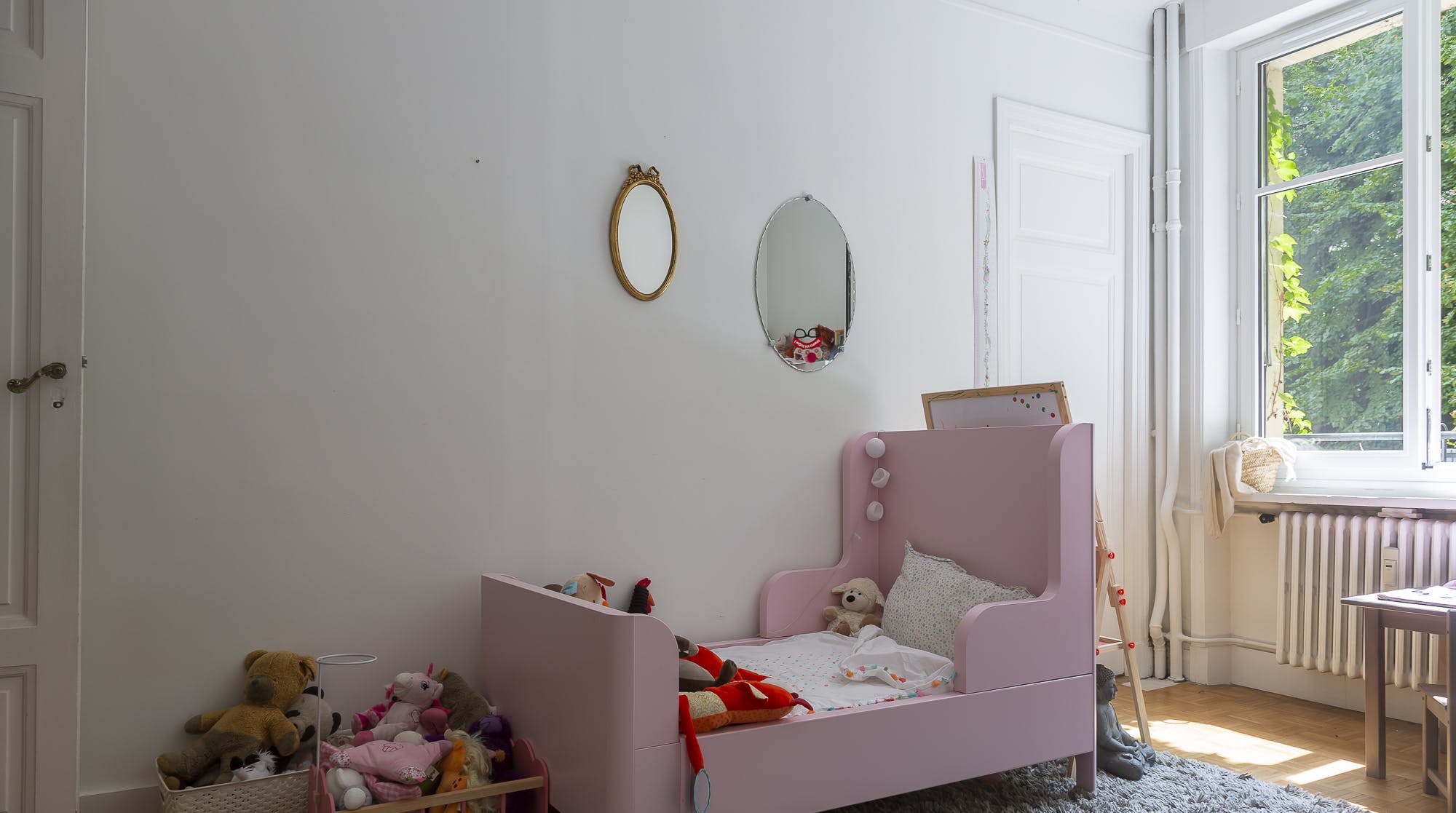Turn left for the Arc de Triomphe and Champs Elysee and right for the Eiffel Tower - this 2 bedroom apartment is perfectly located to explore the historical attractions of Paris. The apartment is filled with light, turning the traditional parquet flooring golden, and highlighting the minimal but carefully chosen contemporary and antique furniture. The windows face out to the beautiful gardens beyond, giving the home a relaxed and peaceful ambience. The second bedroom has a single bed and a cot - this is a great apartment for a young family.