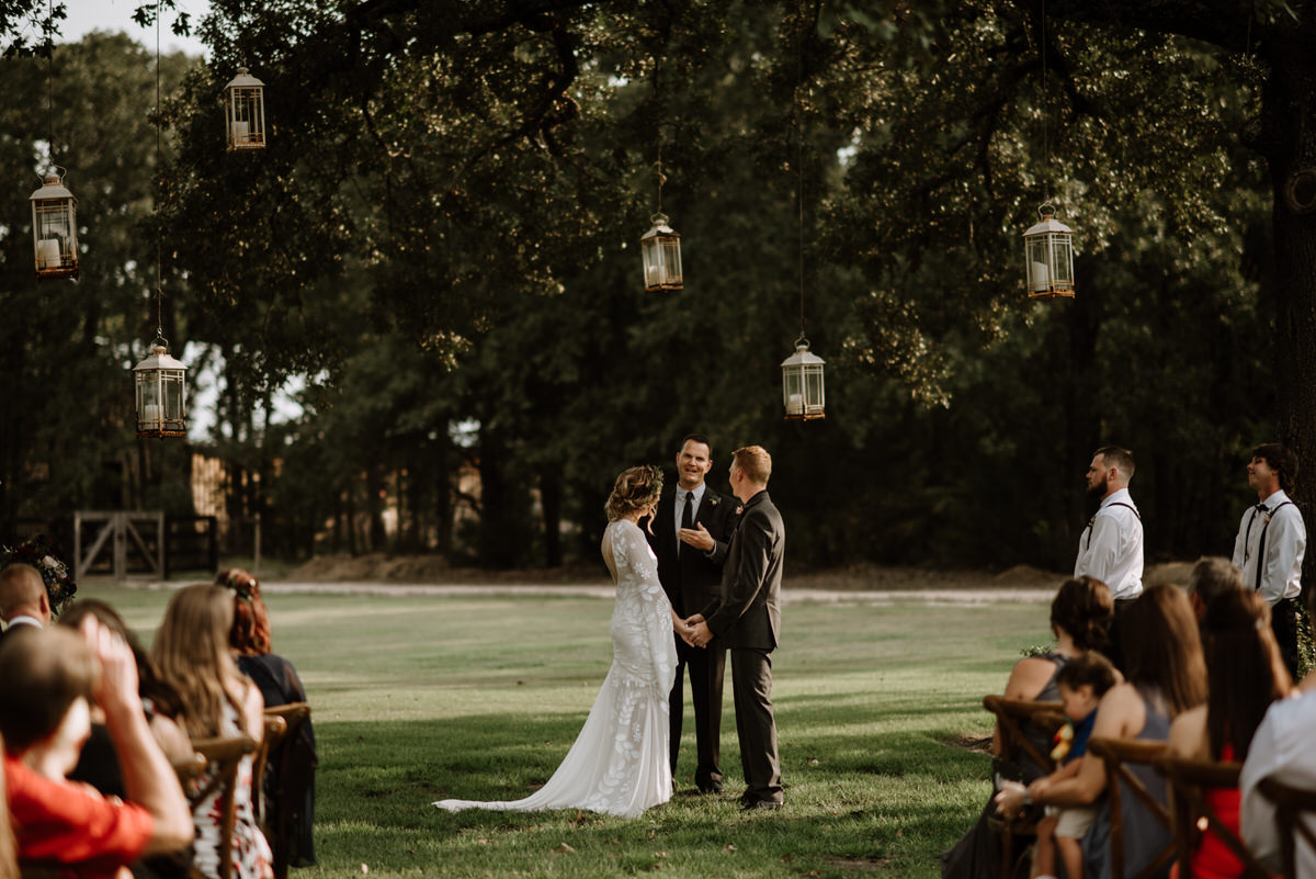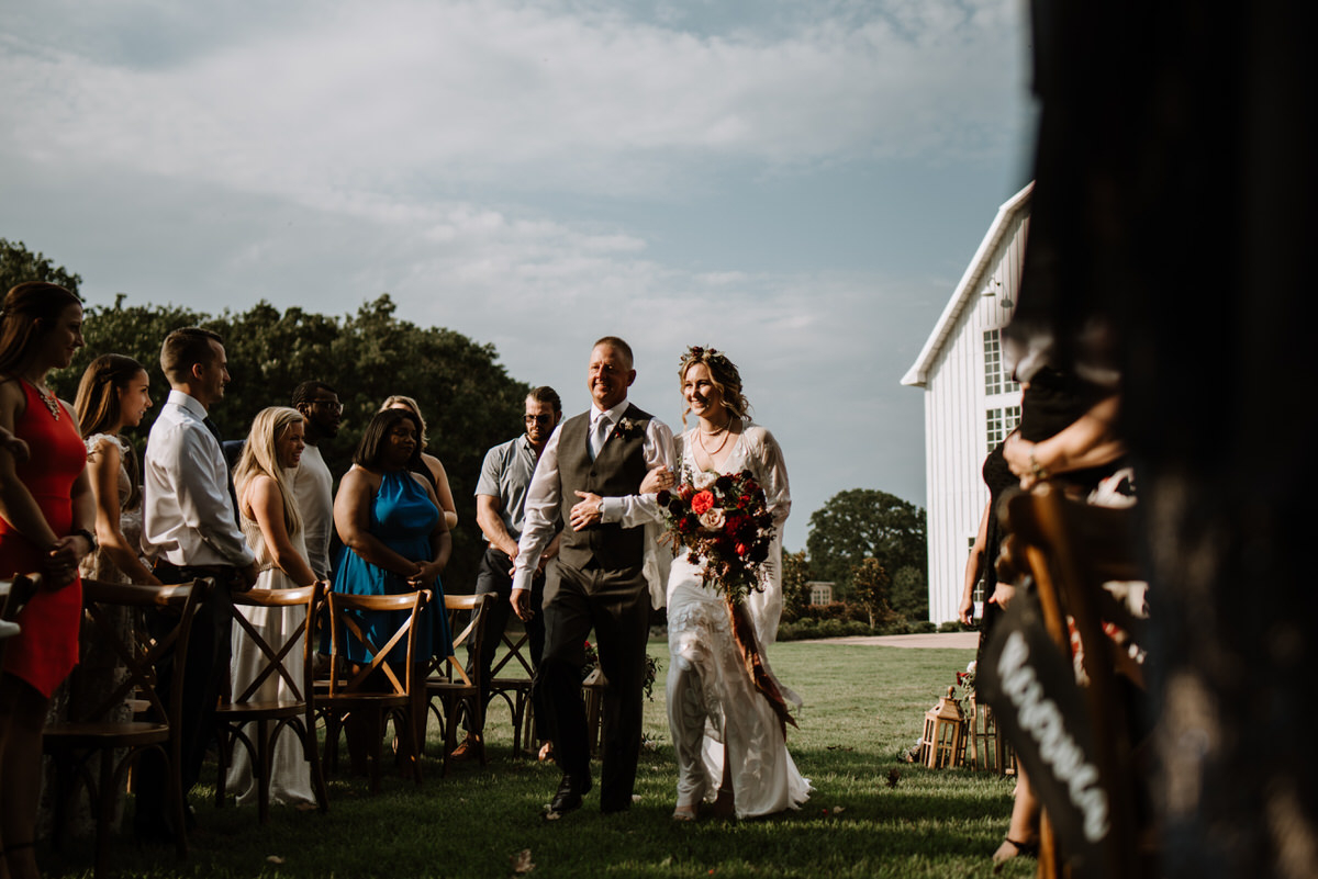 That’s why graphic designer Danielle and computer repair shop owner Trent decided to tie the knot there. Designed, built, and still maintained by the Huerta Family, The White Sparrow is a dream-come-true venue that welcomes both boots and heels. Beyond its rustic yet chic grounds, a breathtaking country landscape ensures that every photo taken is a keeper. Danielle and Trent took full advantage of such a dazzling space with a white wedding with touches of earth tones. The pair’s gorgeous wedding was shot by Danielle’s good friend and former wedding photographer teammate Allison Harp. Both Danielle and Allison had a lot of great things to say about the big day and the killer venue.