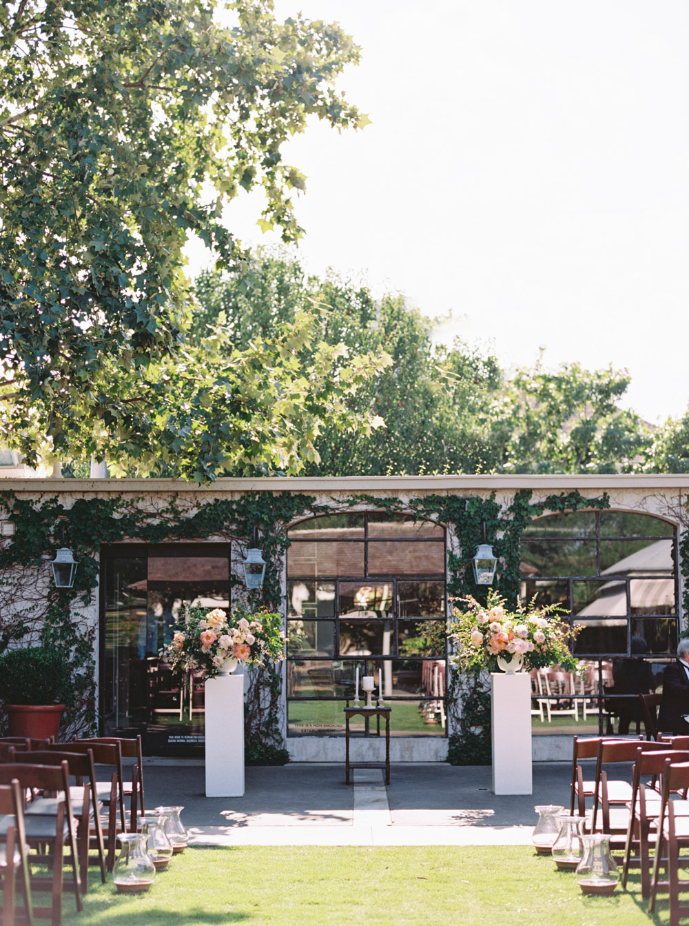 The trim landscape of the restaurant’s gardens set the venue's scene while immaculate lawns and a grand gazebo with 16-foot ceilings make it totally unforgettable.