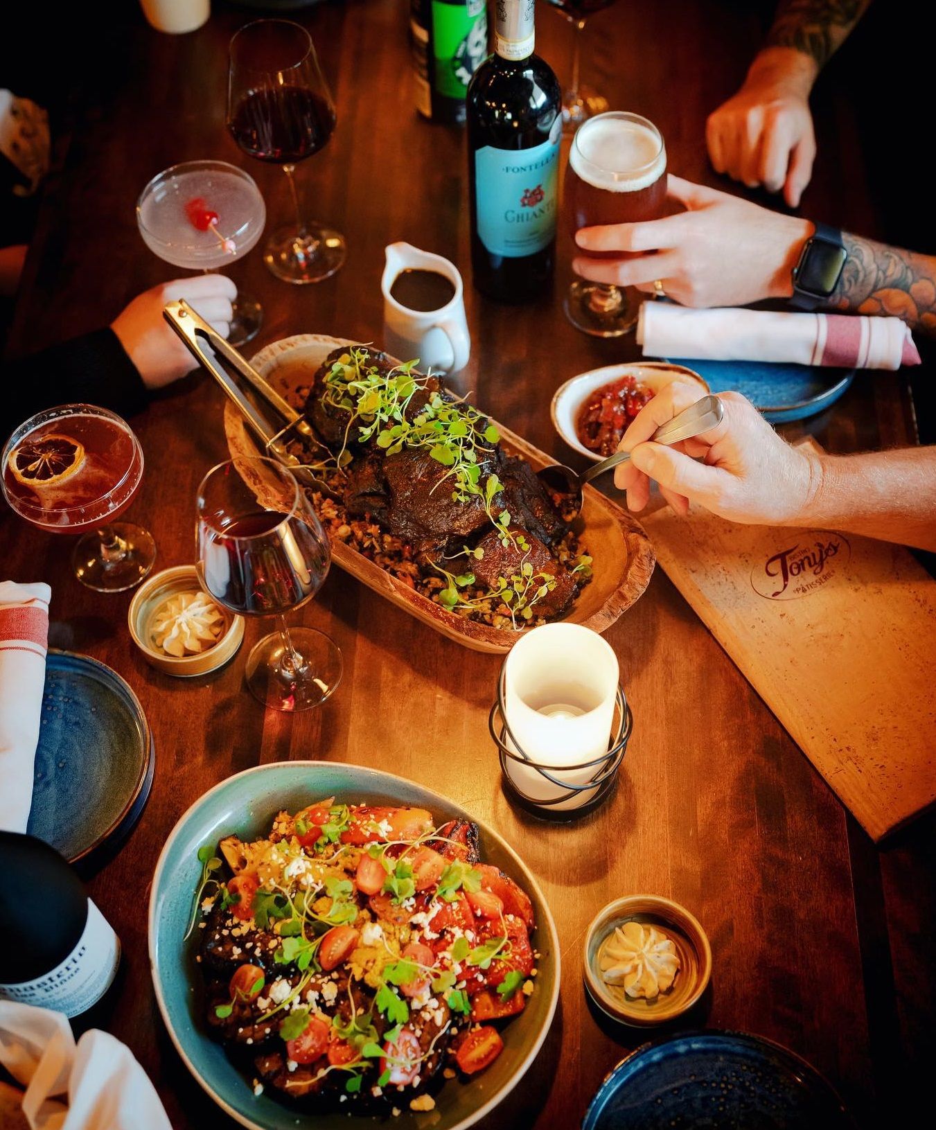 Tony's Bistro & Pâtisserie, brought to you by the same team behind Atelier Tony, is a long-established, award winning restaurant in the heart of Moncton, New Brunswick. Featuring a full pastry shop and bakery as well as a hot kitchen serving fresh fare from ceviche to croissant sandwiches, Tony's Bistro uses the freshest local and imported ingredients, combining them with classical European technique, and serves you in a cozy candlelit dining room.Serving a full, from-scratch menu at breakfast, lunch, and dinner, a beer, wine, and cocktail bar, and of course the aforementioned finest bakery and pastry showcases in the country. Garnering praise from locals, food publications, chefs and foodies alike as one of the best dining experiences in the Maritimes.