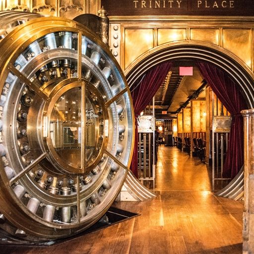 A True NYC GemTrinity Place Bar & Restaurant is a New Breed of a bar and restaurant in Manhattan’s Financial district. The bar itself is fitted within an historical Wall Street bank vault dating from 1904, showing off the true wealth and power of its day. If even to visit our two 35 ton vault doors it will be worth the trip.Old world indulgence is married perfectly with new world contemporary elements to create a warm comfortable vibe welcoming to all who peer through its doors.Over size red silk lamp shades give delicate light to the 40 feet of mahogany bar anchored by Italian made beer towers. Brown leather banquette’s hand crafted in Ireland fit perfectly between pillar of 5’ thick steel, and the mahogany wood clad dining room with chandelier compliments the menu to please even the most refined palette.