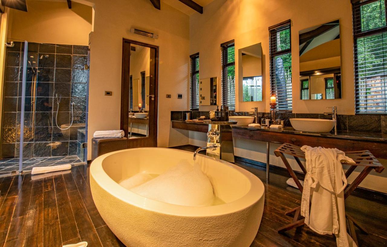 A private outdoor deck and small private infinity pool feature in all suites and villas at Tsala Treetop Lodge. Each has a living room with a fireplace, a complimentary bottle of port, and a mini-bar. Bathrooms feature chic free-standing baths, and bedrooms have views over the forest canopy.