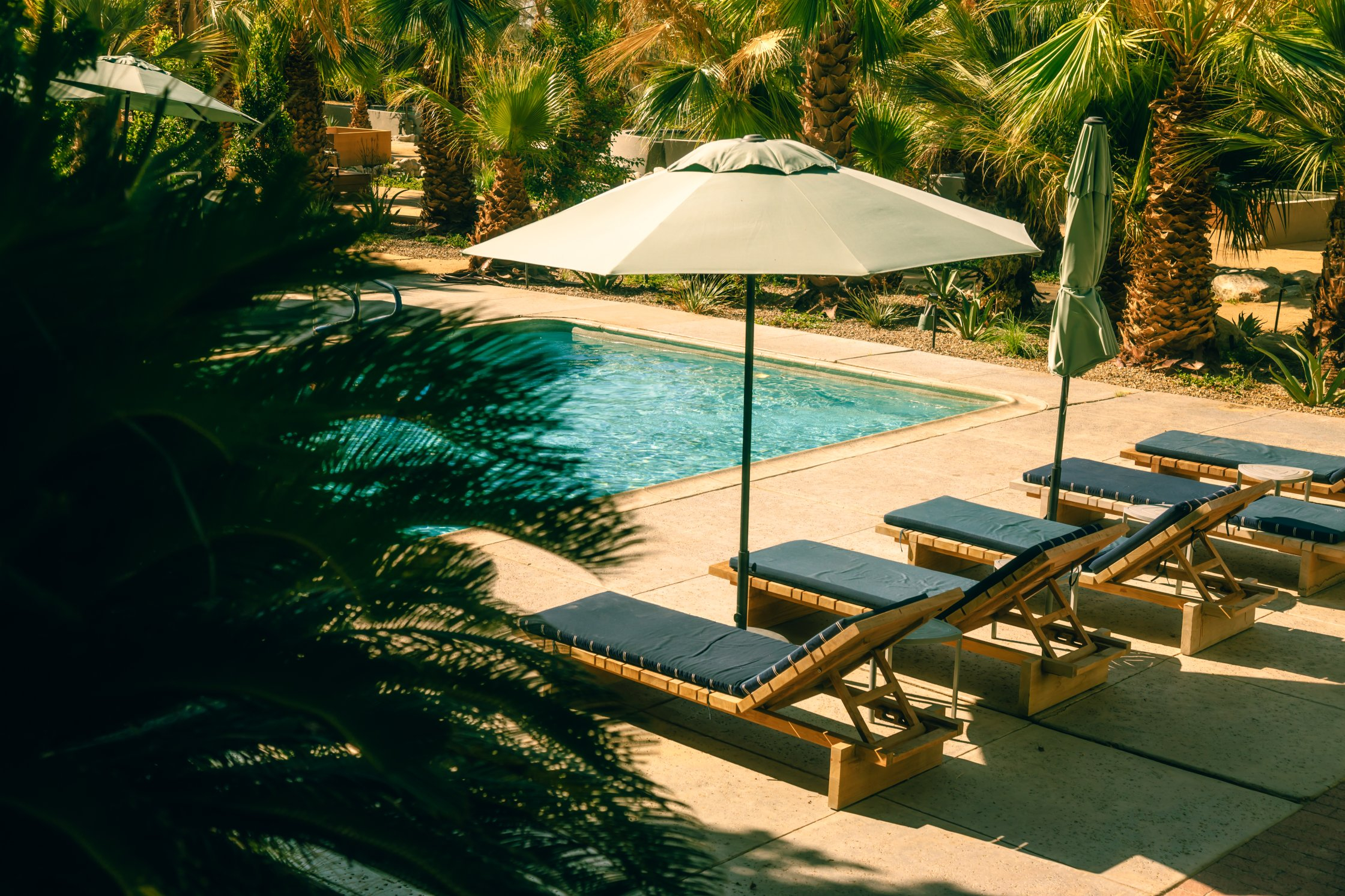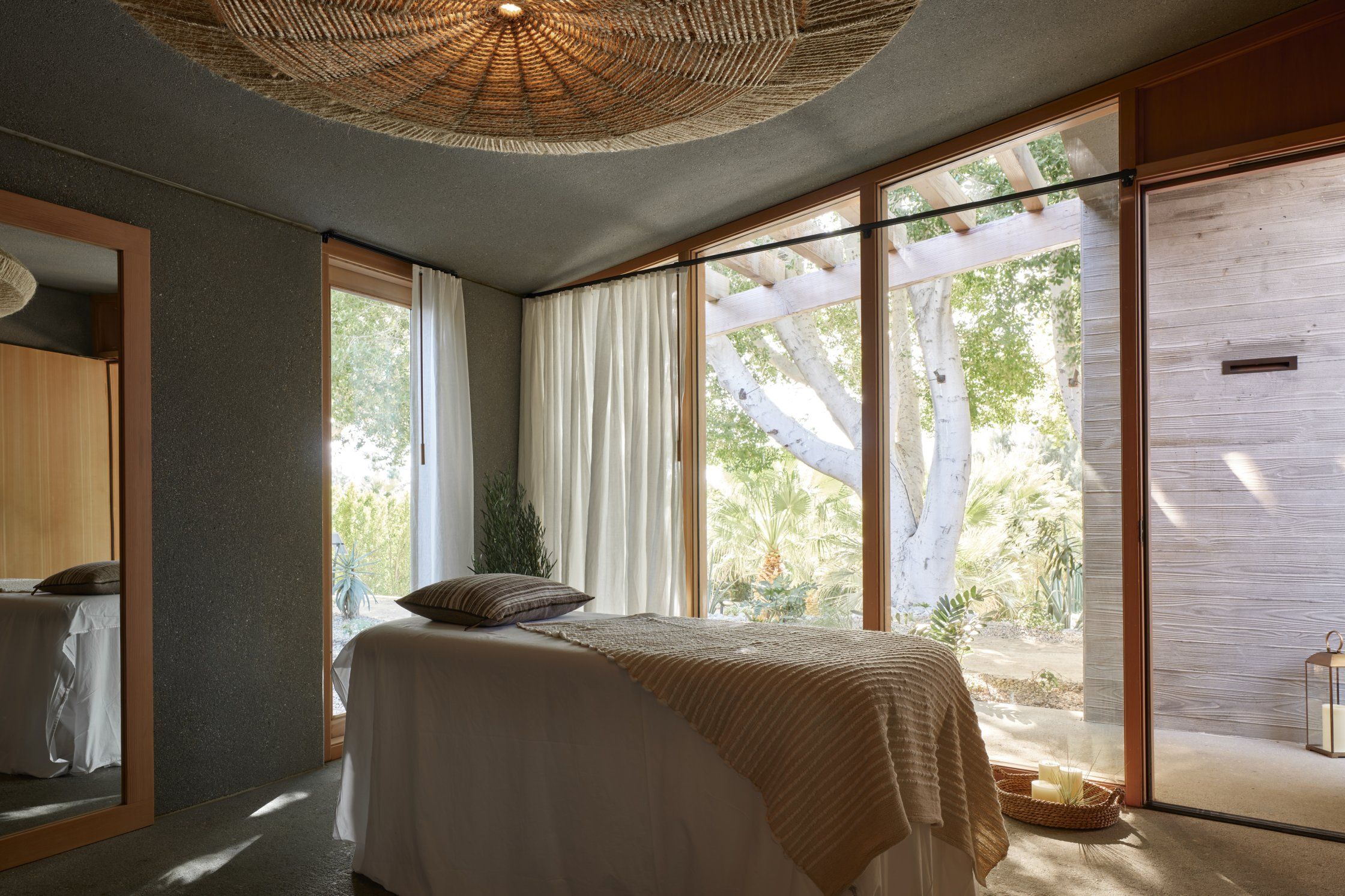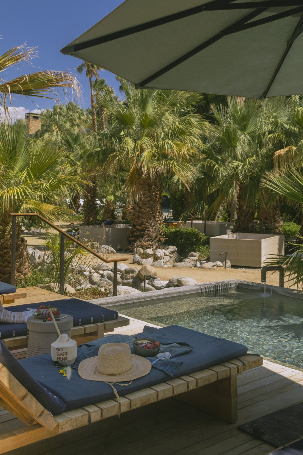 Two Bunch Palms is an oasis formed miraculously in an otherwise barren space where teak and concrete soak tubs finished with copper faucets are stretched out under massive trees. Picturesque desert landscapes are unavoidable and inspire endless possibilities among lush green olive groves and ancient cacti - a breathtaking respite between the palms.