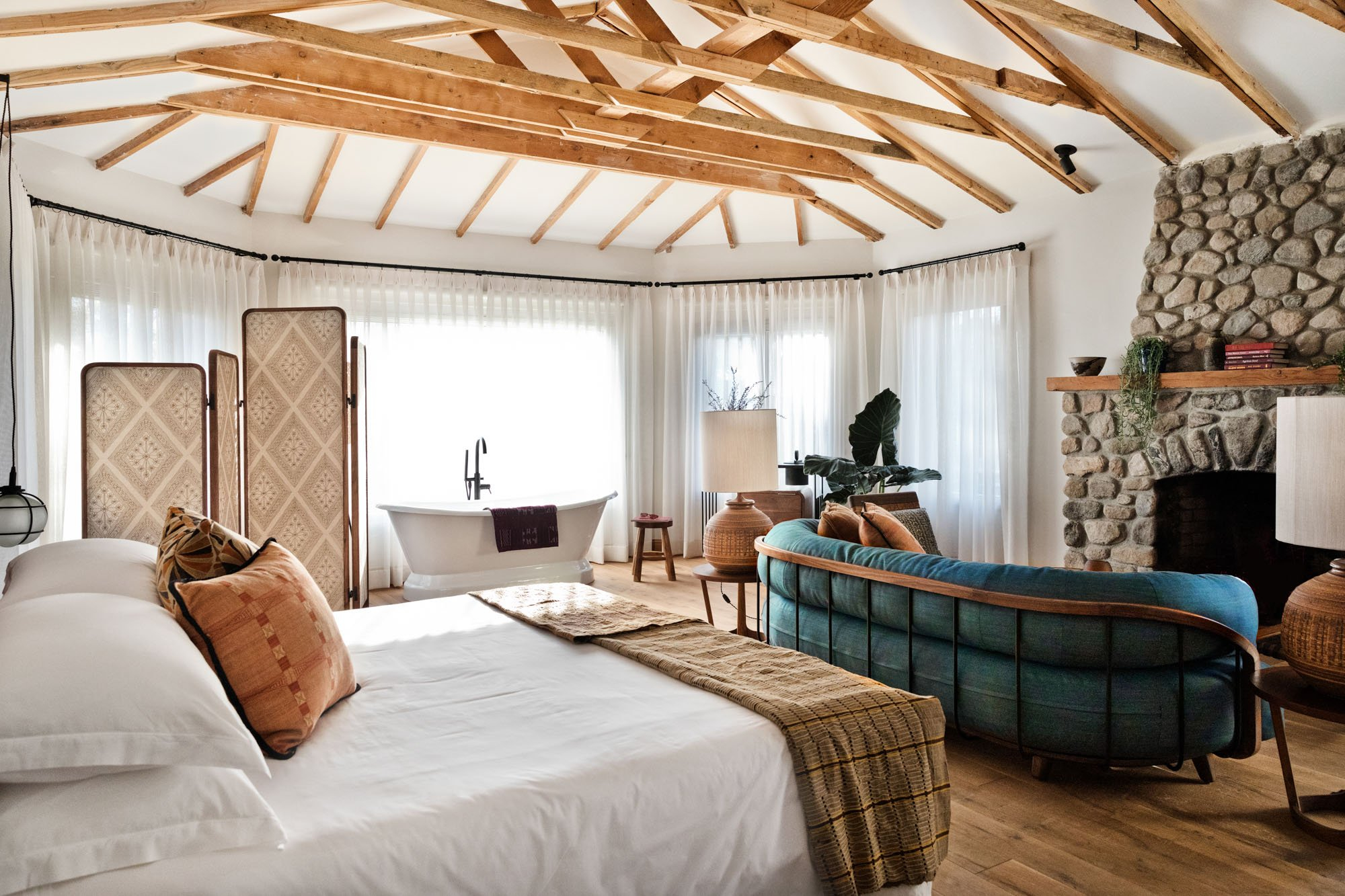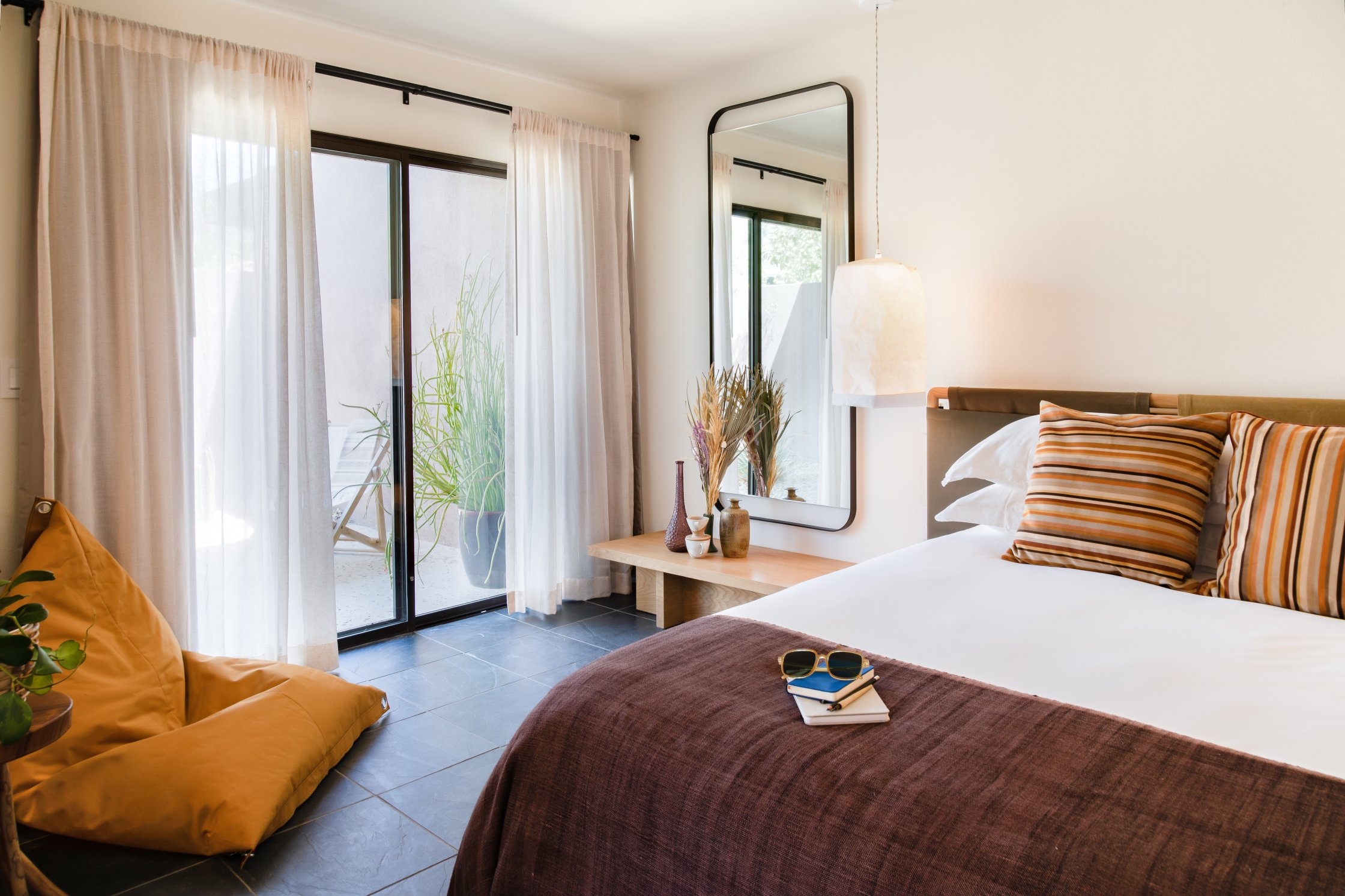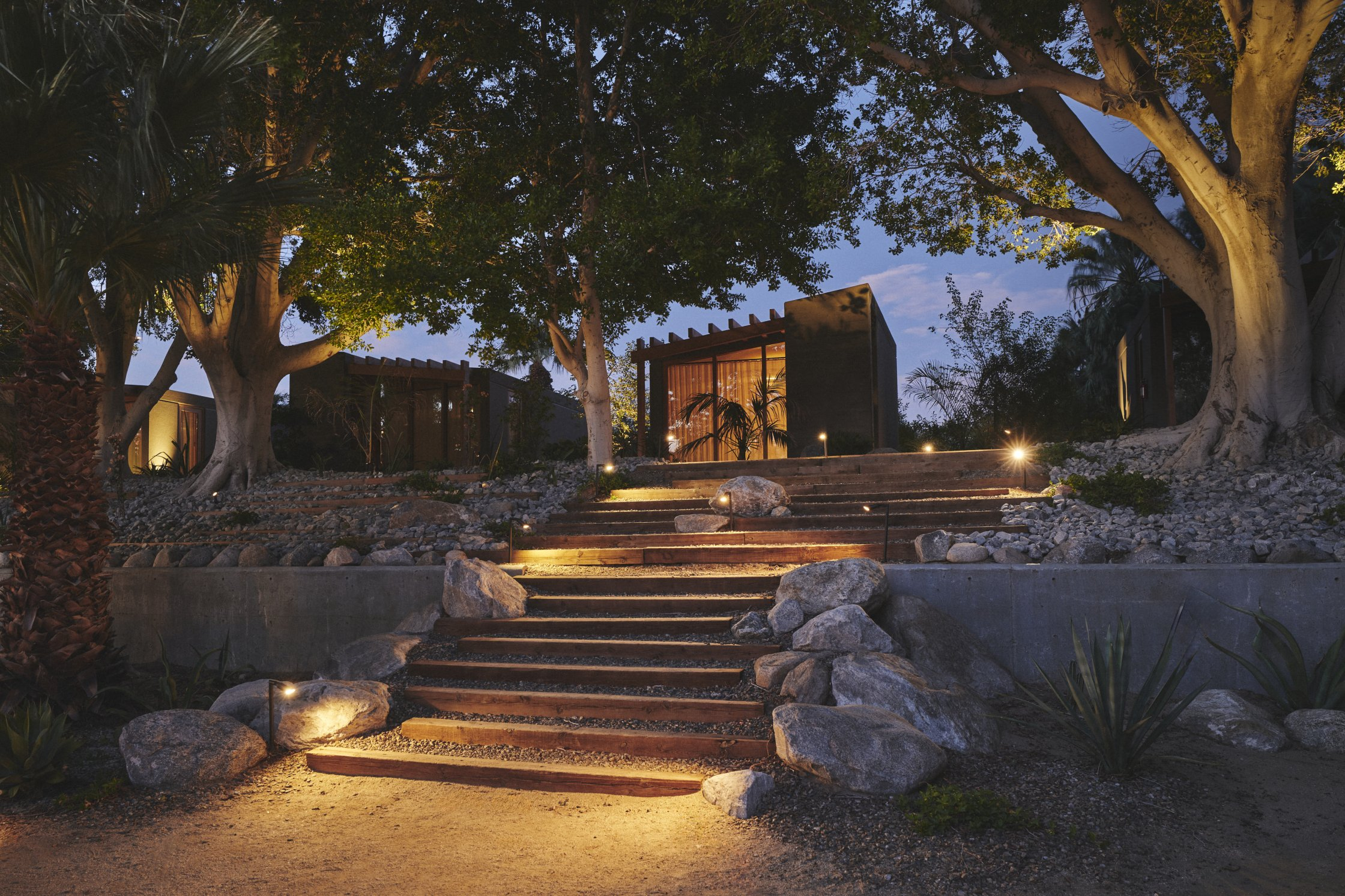 Two Bunch Palms is an oasis formed miraculously in an otherwise barren space where teak and concrete soak tubs finished with copper faucets are stretched out under massive trees. Picturesque desert landscapes are unavoidable and inspire endless possibilities among lush green olive groves and ancient cacti - a breathtaking respite between the palms.