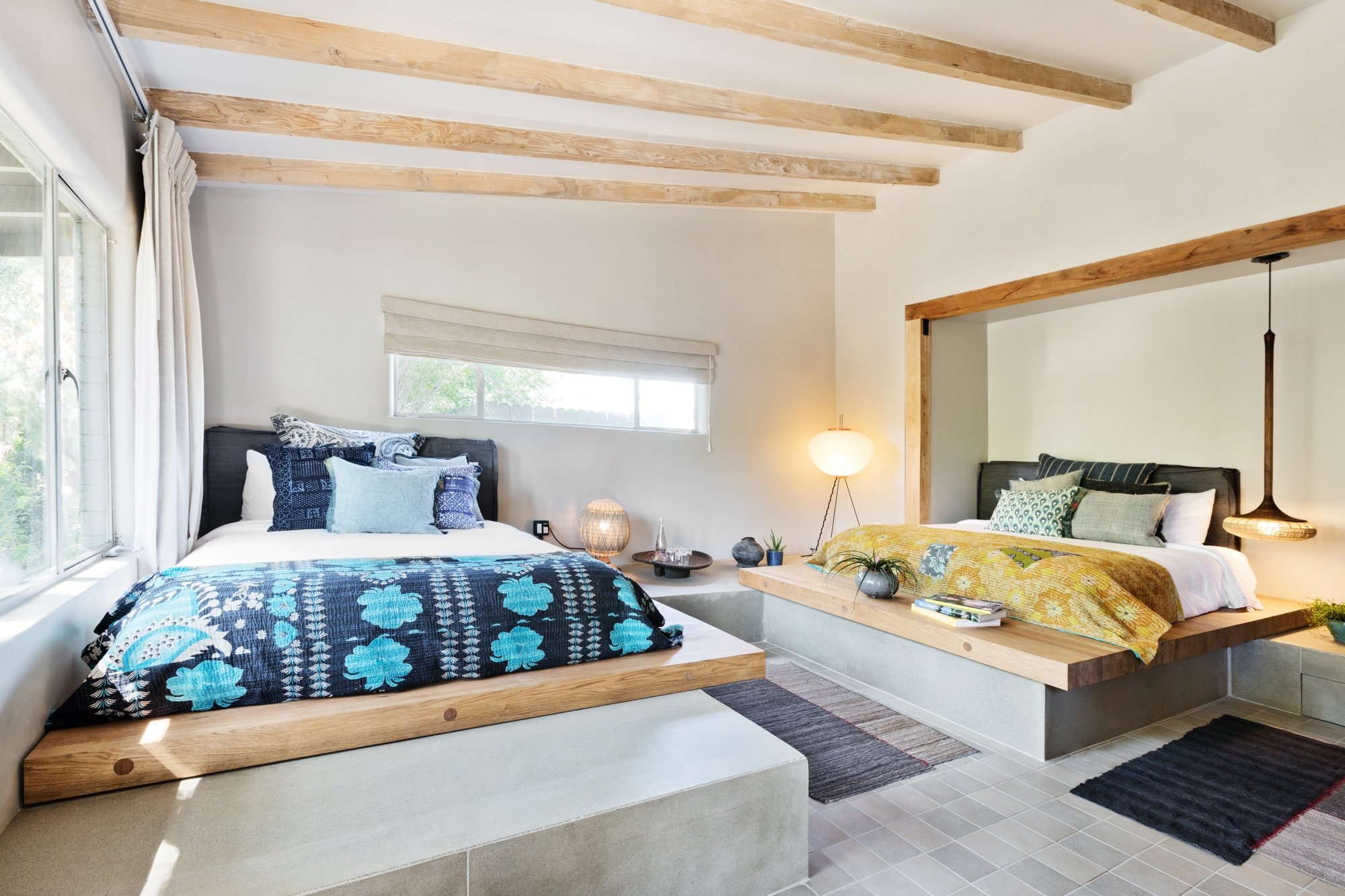 Our famed, private-gated 77 acre-retreat was built in 1940 and recently redesigned in February 2019. Custom interiors and spectacular architecture have been constructed with organic materials, hand-crafted vintage tiles & ipe wood, in collaboration with Studio Mai design group. Two Bunch boasts a brilliant view of the desert skyline, or stargazing under the night sky and offers various indoor and outdoor spaces that can be tailored to suit your imagination. Two Bunch Palms has been host to a variety of events ranging from wedding celebrations, wellness retreats, and corporate retreats.