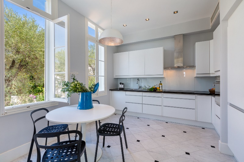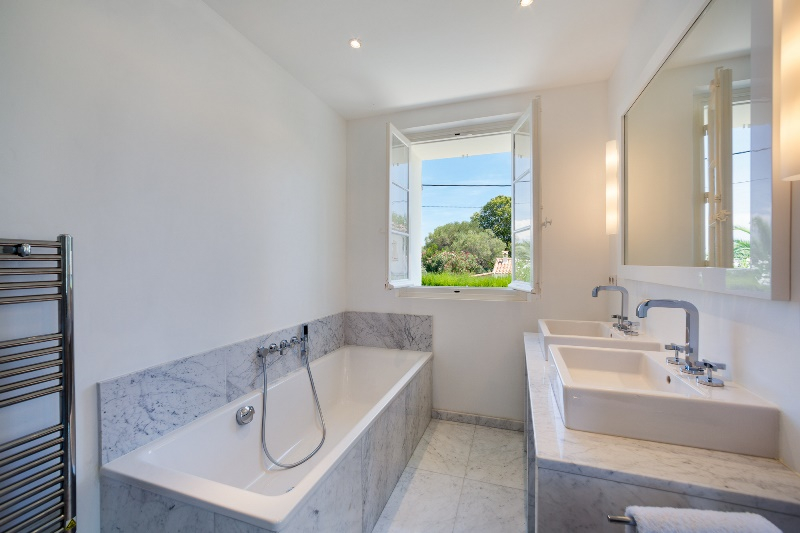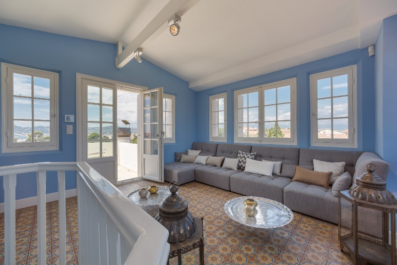 At ease on the prestigious Cap d’Antibes peninsula between Cannes and Antibes, this six-bedroom villa combines modern luxury with cozy comfort. Outside, a pristine swimming pool glistens beneath somehow bluer sky with stunning views abound.
