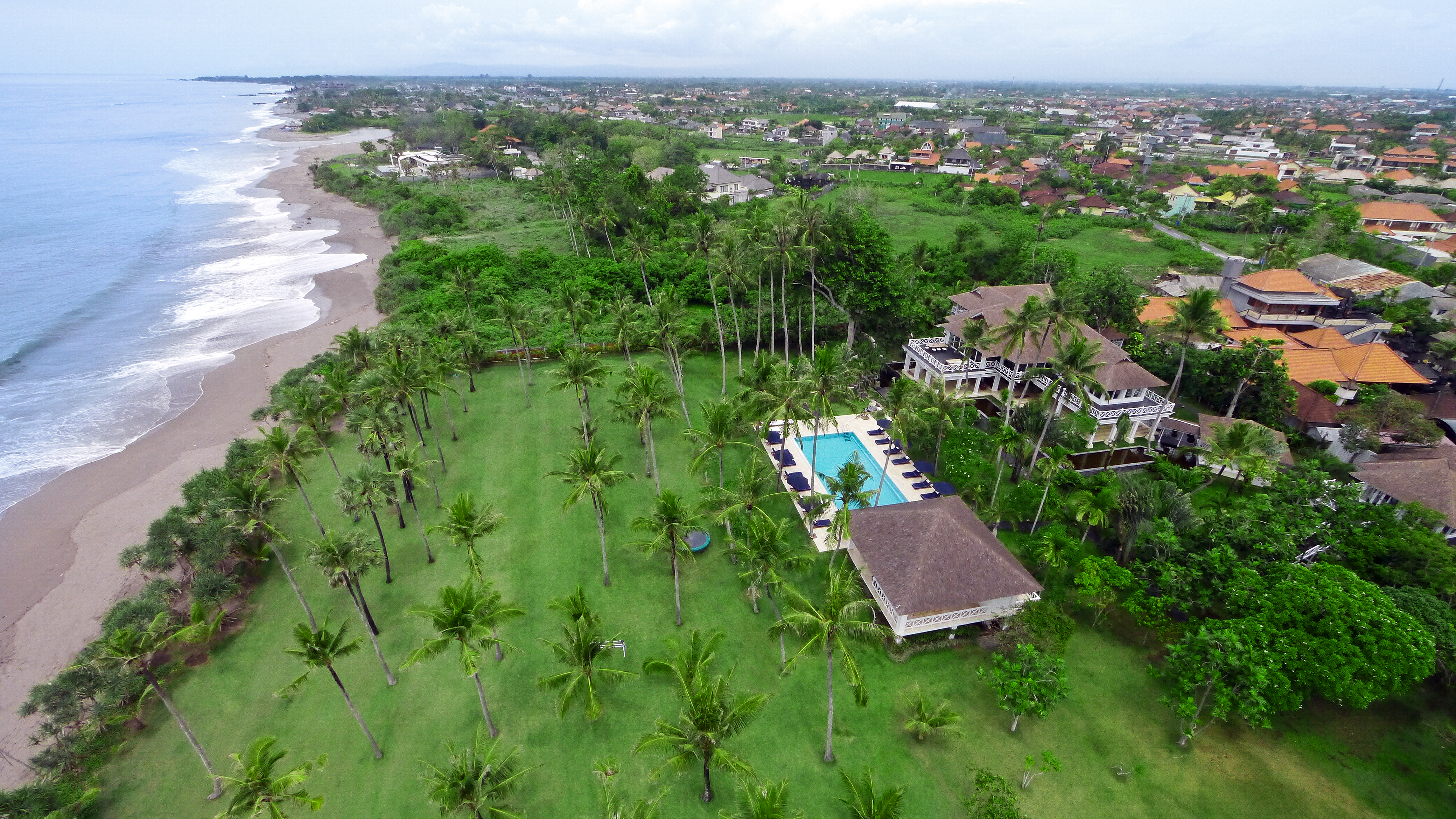 Semara Beach House is one of Bali’s most distinguished properties. This seven bedrooms estate (which includes two junior bedrooms) is set on 1.33 hectares (over 3 acres) of beachfront land, large swimming pool, vast lawn and coconut grove, home cinema, professional kitchen, 20 staff including personal Butler and Chef from 7am to 10pm, and entertaining capacity for hundreds of guests.