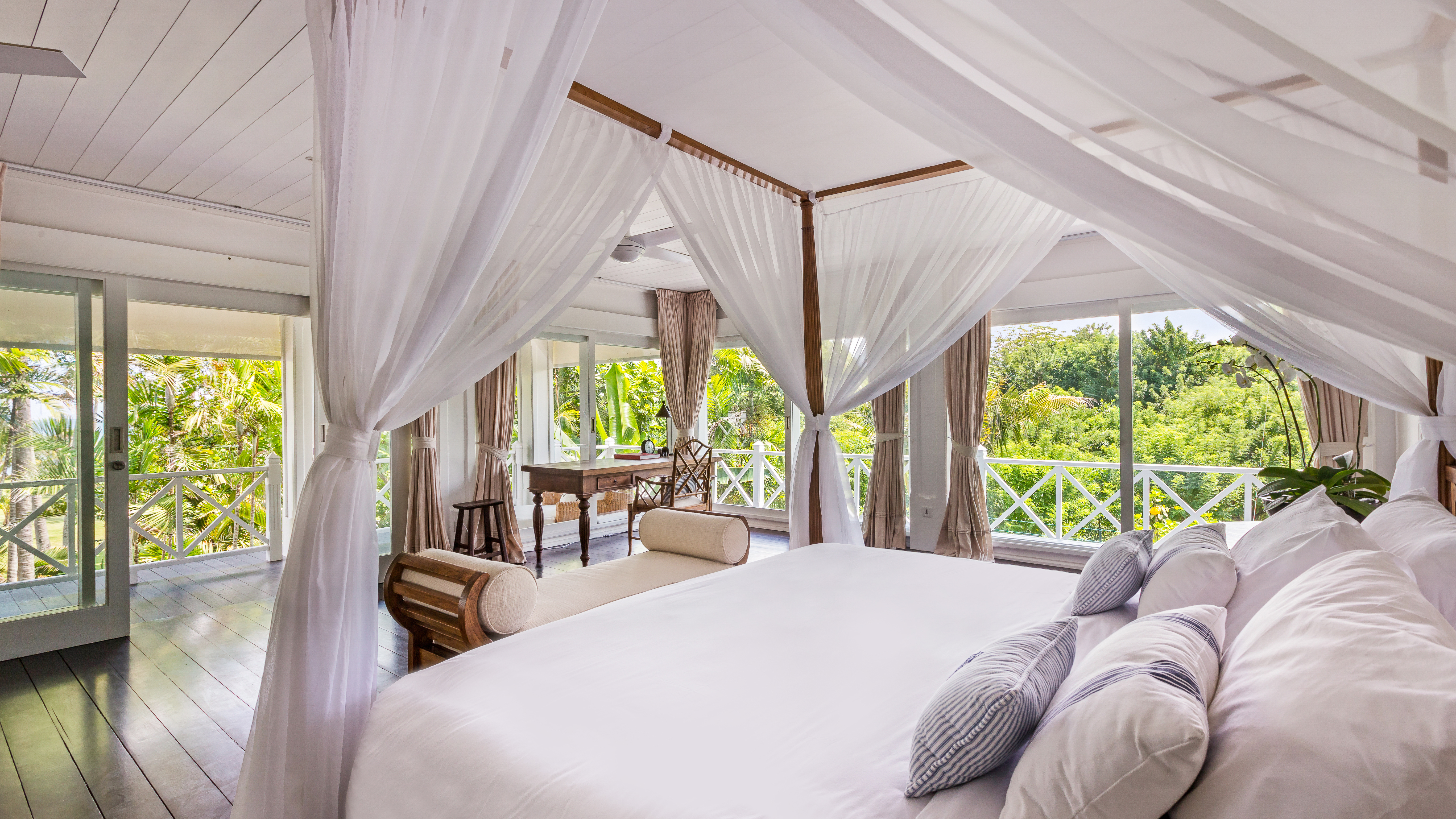 Semara Beach House is one of Bali’s most distinguished properties. This seven bedrooms estate (which includes two junior bedrooms) is set on 1.33 hectares (over 3 acres) of beachfront land, large swimming pool, vast lawn and coconut grove, home cinema, professional kitchen, 20 staff including personal Butler and Chef from 7am to 10pm, and entertaining capacity for hundreds of guests.