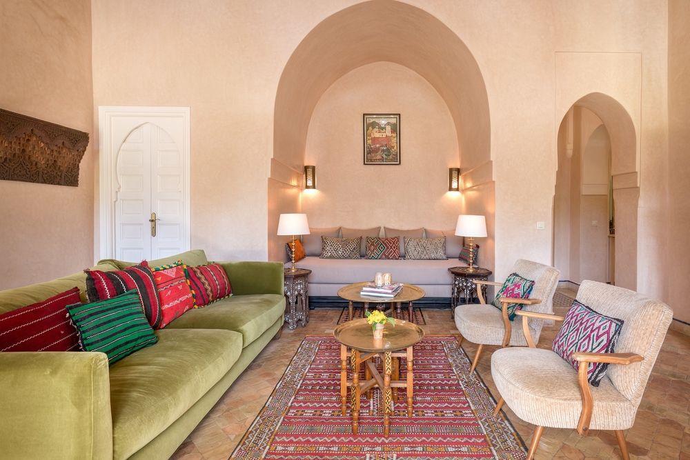 This stunning mansion is part of a small collection of luxurious villas, the Domaine de l'Akhdar. It is a managed, gated and secure complex of 20,000m2. 'Andalusian Alhambra-style' gardens have been created between the private villas and each house can freely enjoy the use of the pool house, a large swimming pool and a tennis court.