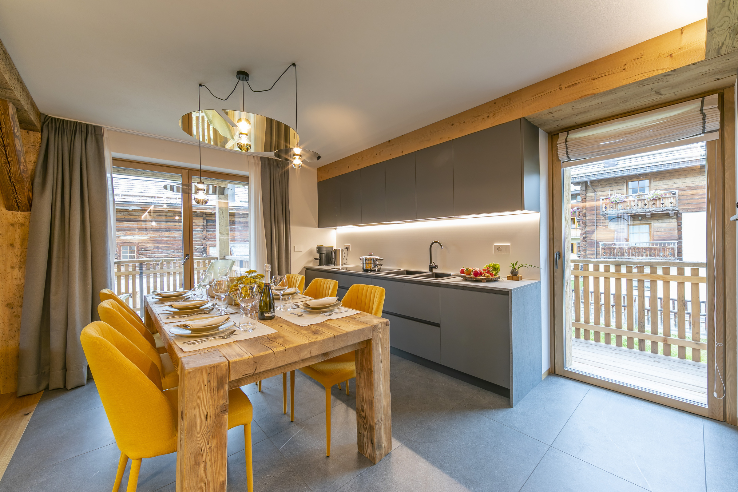Situated less than a fifteen-minute walk from the centre of Livigno, this modern chalet-style apartment has plenty of shops, restaurants and cafes within easy reach. Better still, you’re a five-minute walk from a cable car to the slopes and twenty minutes from the serene shores of Lake Livigno. When you’re not carving your way down a blue piste or embarking on a leisurely bike ride, you’ll be on your private balcony, sipping a coffee and watching over the rugged landscape. Inside the abode, it’s contemporary yet cosy – there’s a soft sofa for curling up with your loved ones, a bright dining area with sleek kitchenette for home-cooked dinners and quiet bedrooms that ensure sweet dreams. Elsewhere in the building, the communal sauna is the perfect spot to unwind after a busy day.