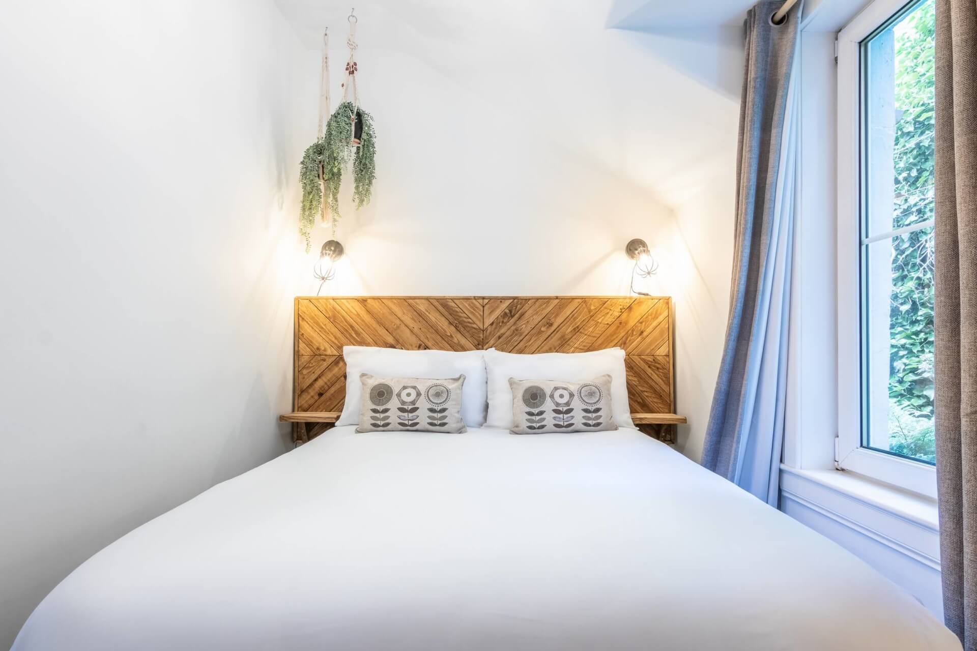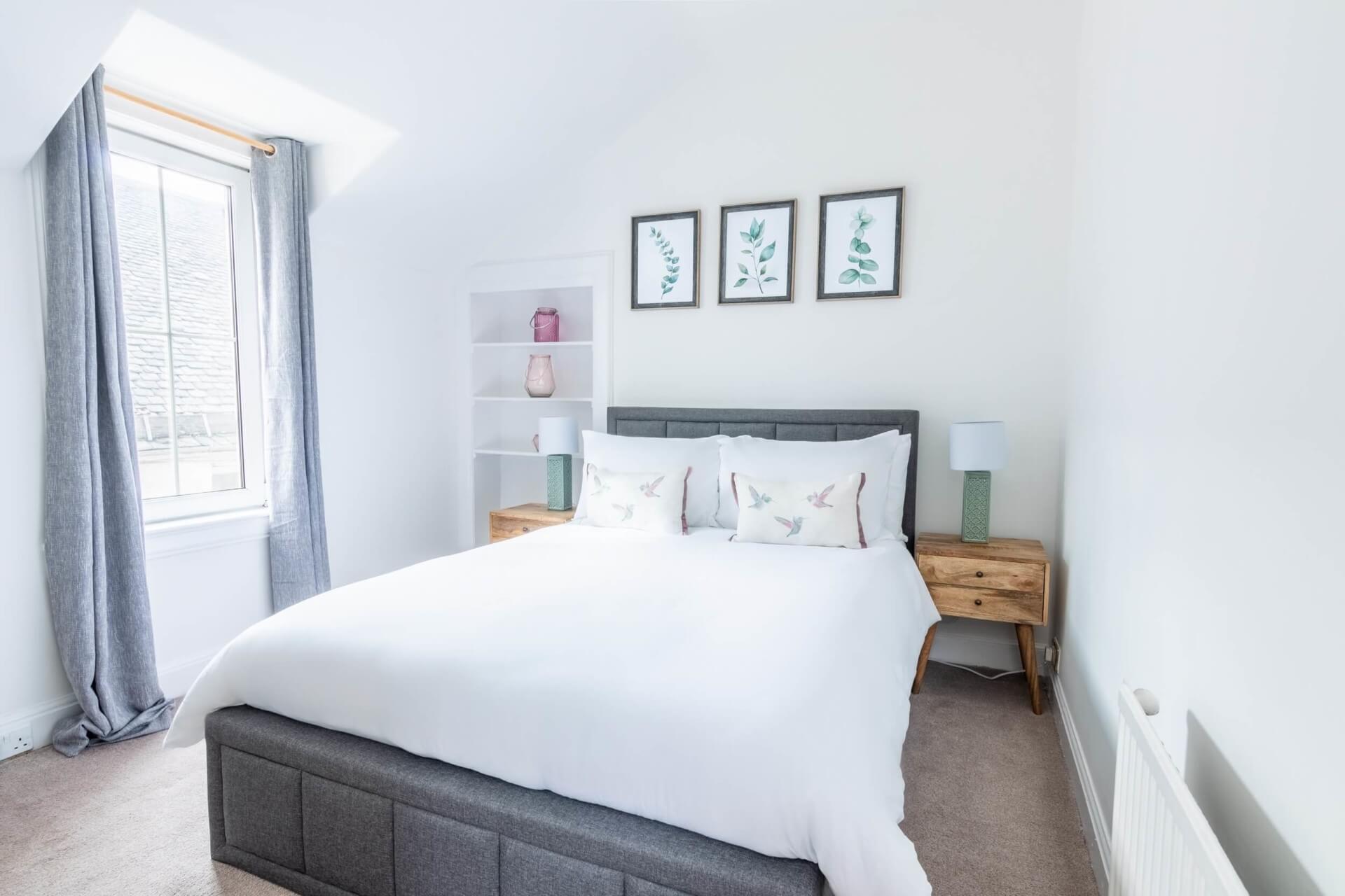 In the centre of Inverness, just opposite the castle, this bright wee cottage is style and substance rolled into one. On your doorstep, you’ve got family restaurants serving Scottish classics, pubs with live folk music in the evening, and it’s just a two-minute stroll to the banks of the River Ness. Further afield, it’s a fifteen-minute drive to the shore of Loch Ness and there are plenty of whisky distilleries in the area to explore. The cottage itself is pristine white with pops of colour inside. The living room is set around a striking midnight-blue fireplace and dappled with pot plants and cacti. Come evening, cosy up on the sofa and strum a folk song on the acoustic guitar, or dive into one of the holiday reads from the towering bookshelf. The kitchen has everything you need for self-catering and bedrooms are blissful with botanical prints and boho touches.