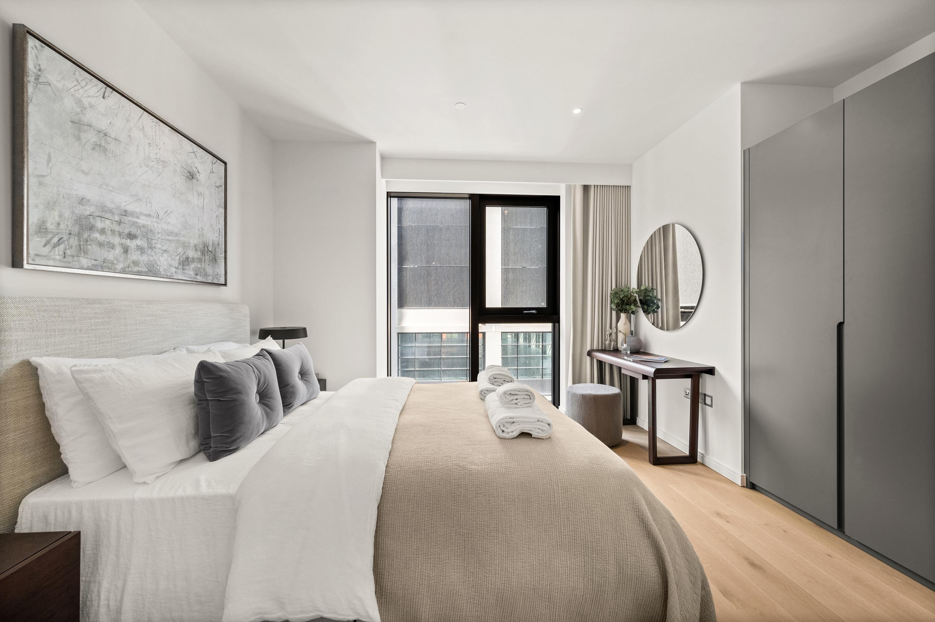 This sleek apartment perfectly reflects its location in Canary Wharf. Ultra-modern with excellent transport links to get you around London, it's ideal for those travelling for work or planning an extended stay. The gigantic windows flood the main living space with natural light, and the views across the city are simply stunning at all times of day. The open-plan layout means that you can chat with your guests over a glass of wine while you whip up a tasty roast dinner in the kitchen. And, you'll even have a balcony, which is the perfect place to sip a morning coffee or round off the day with a nightcap as the city lights up below. In the building, you'll have a access to a co-working space if you need to catch up on work and a shared south-facing terrace too. Canary Wharf is known for its financial businesses, and there are also plenty of restaurants and bars where you can let your hair down after a busy day. The Museum of London Docklands, fifteen minutes away on foot, gives you an insight into the area, while peaceful Mudchute Park and Farm is twenty minutes away. And, if you hop on the tube, you can arrive in central London for dinner and a show in only twenty minutes.