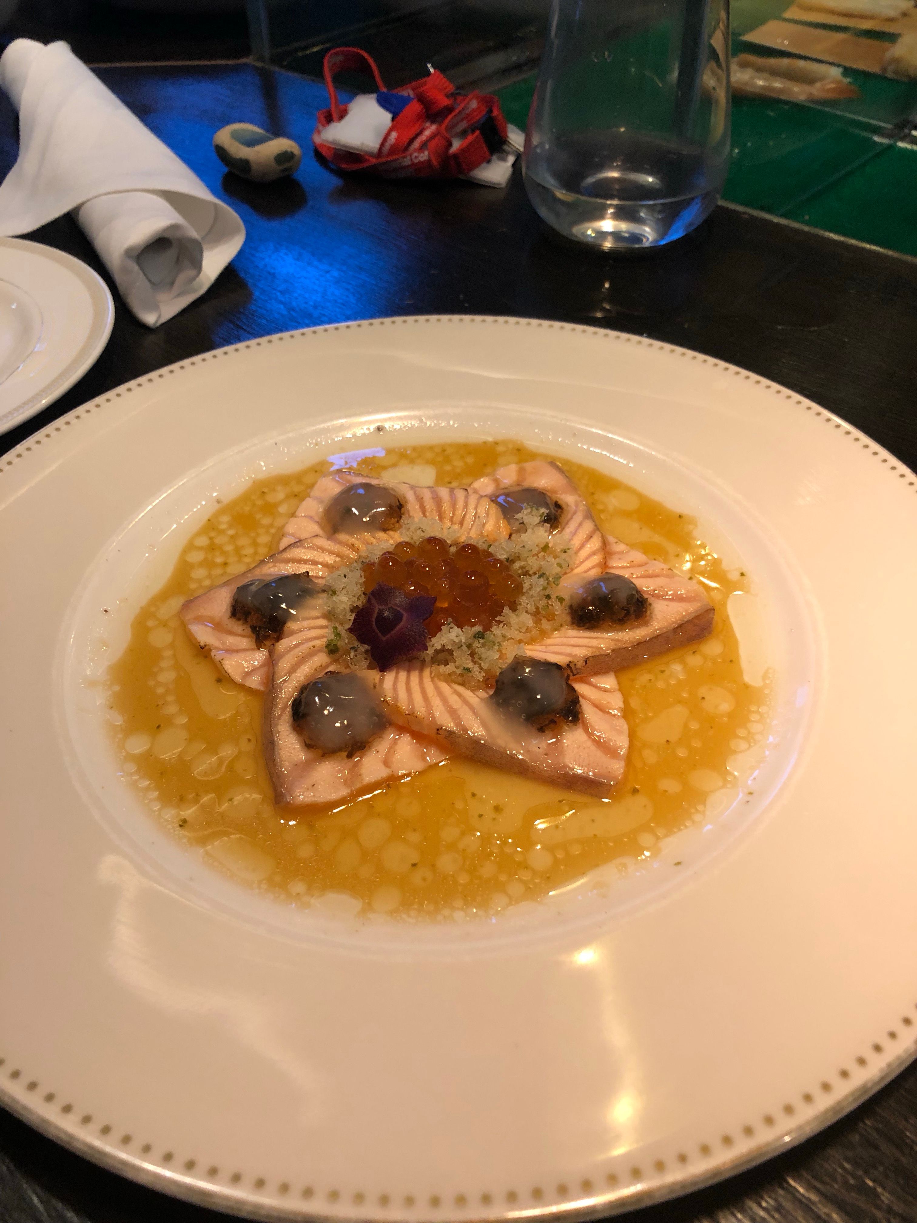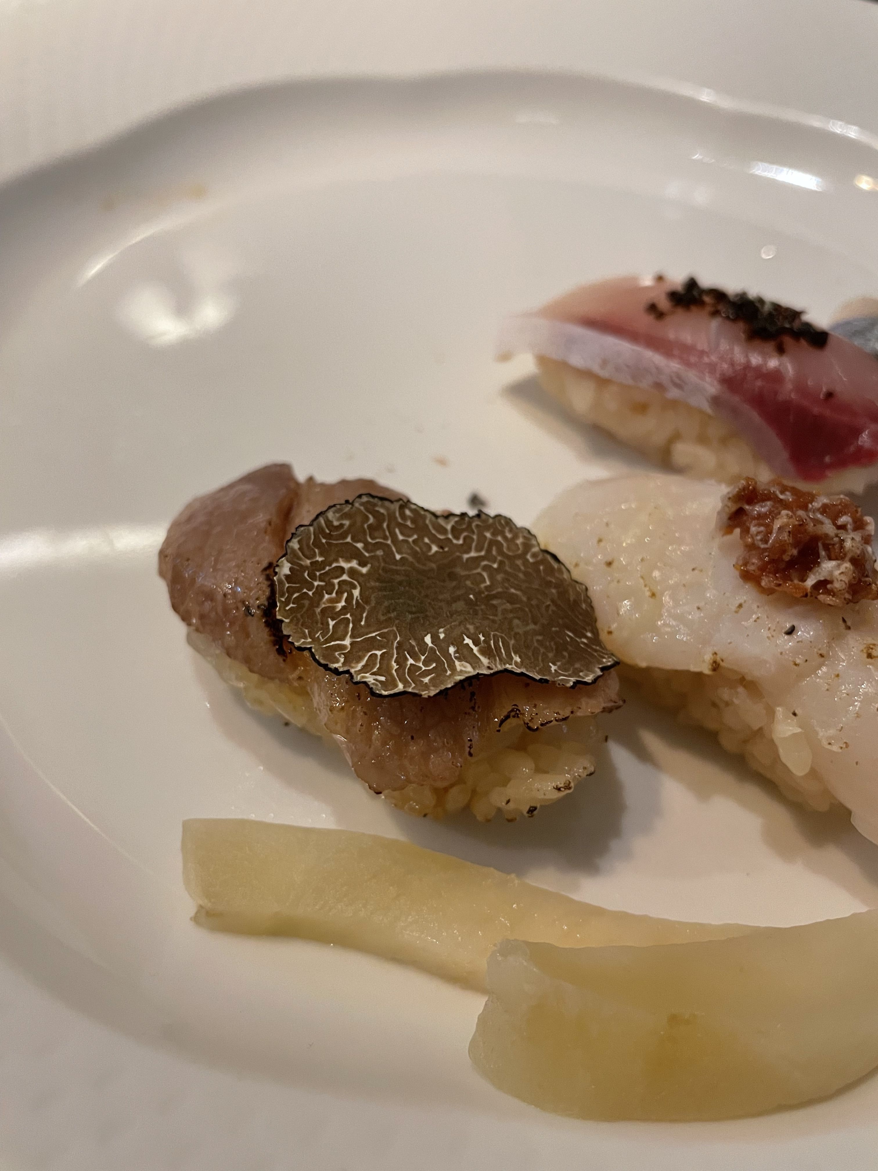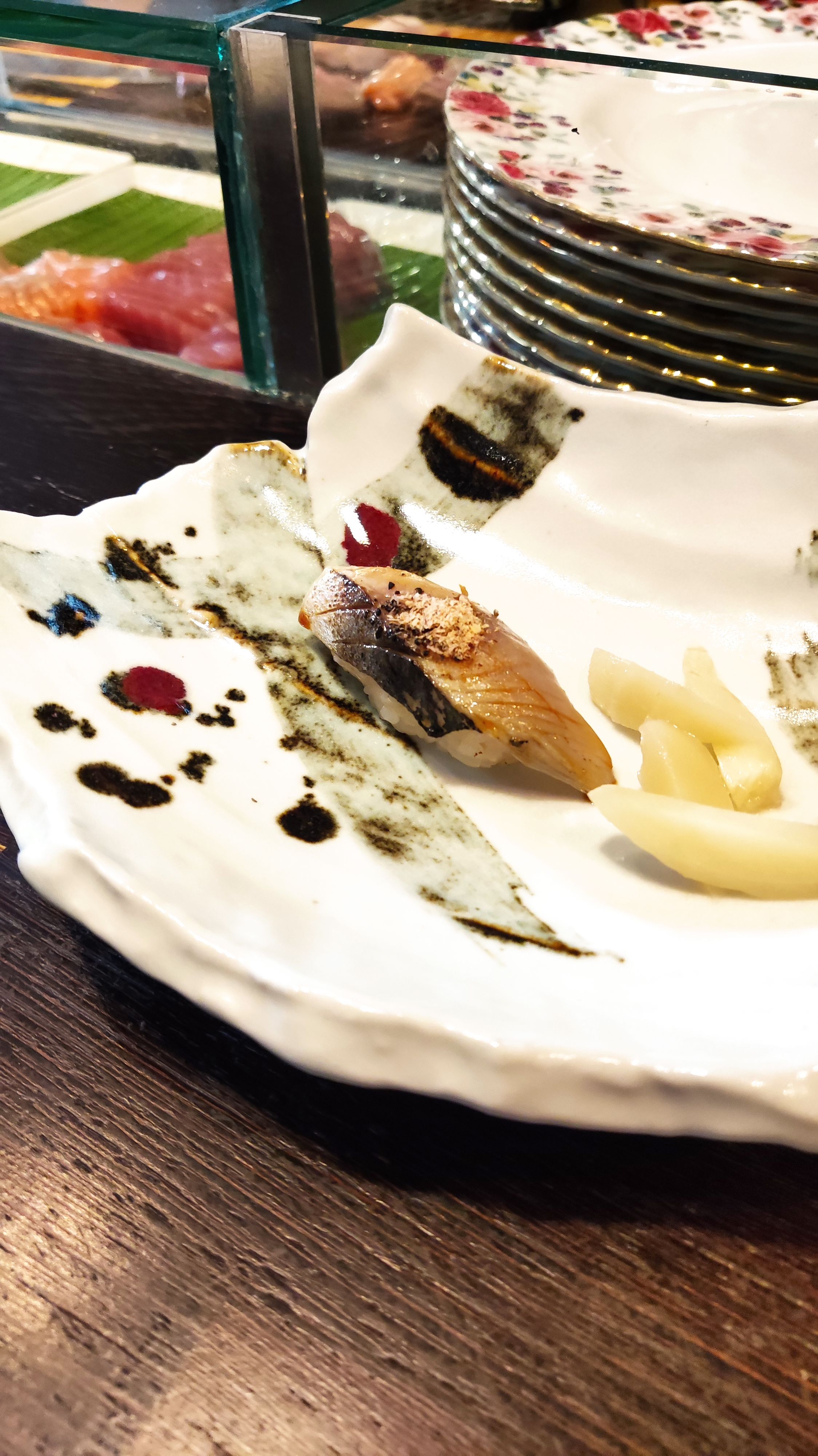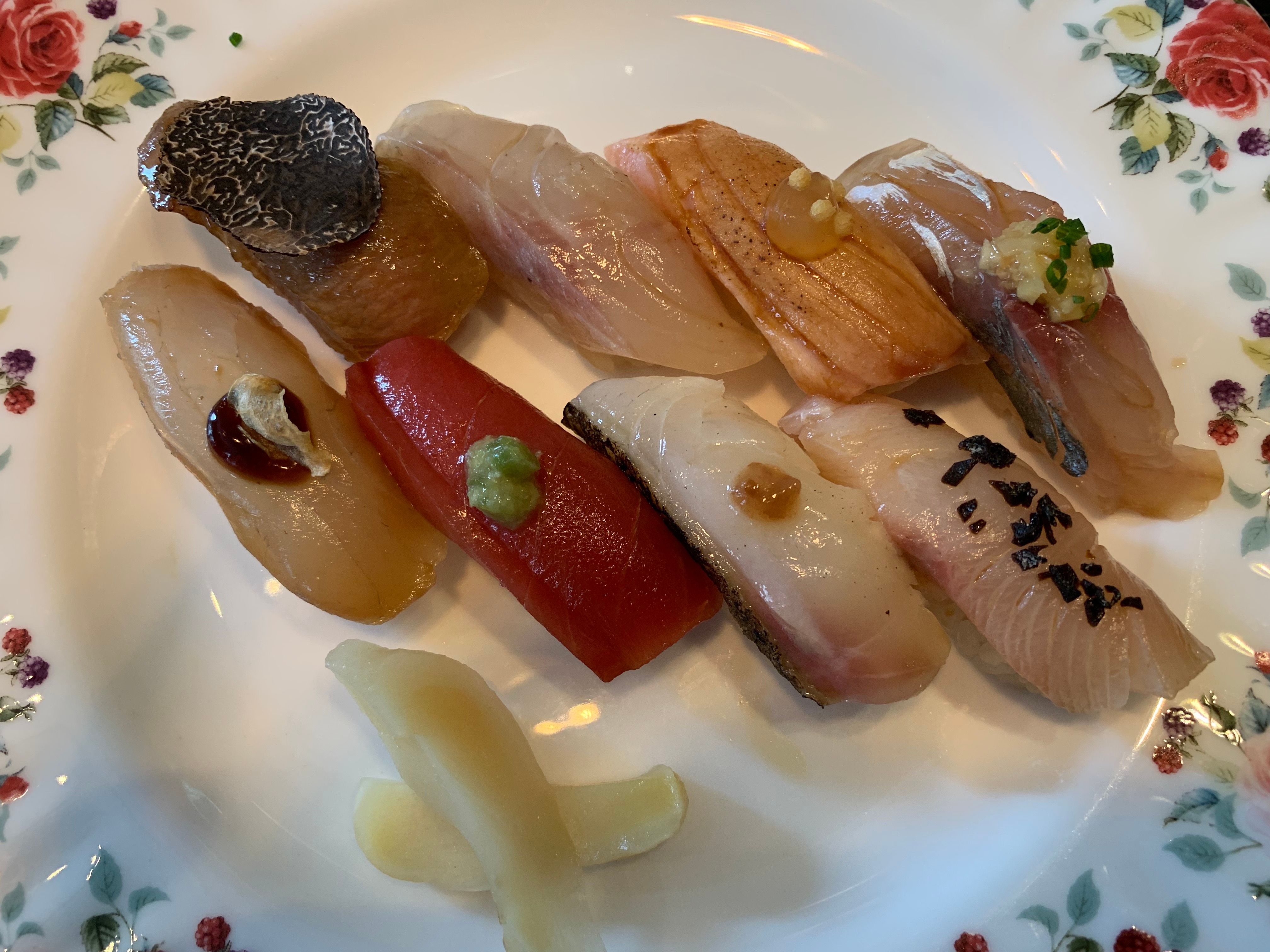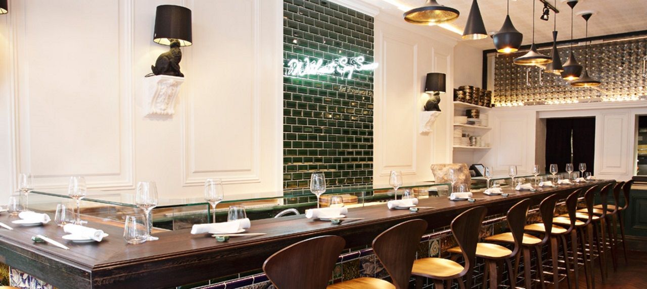 Hidden away off of Kensington’s famed High Street, Yashin Sushi is an upmarket take on the popular open kitchen style of sushi restaurant. Seated around the central kitchen area, diners enjoy the spectacle of food being prepared in front of them, skill of sushi rolling displayed for all to see. If you can take your eyes off of the chefs, you’ll find yourself in an exceptionally modern dining room, all monochrome colour scheme and designer lighting. Yashin Sushi’s menu is made up of both traditional and contemporary sushi and sashimi, sensibly priced to reflect the extremely high quality of the ingredients that go in to every item.Our sushi concept is “without soy sauce – but if you want to”. Of course, we can serve as much soy sauce as the diner desires; however, what we want to emphasise is the taste of the fish. Therefore, each piece of sushi that we serve is brushed with the right amount of soy sauce and topped with an accompaniment that harmonises with the flavour of t