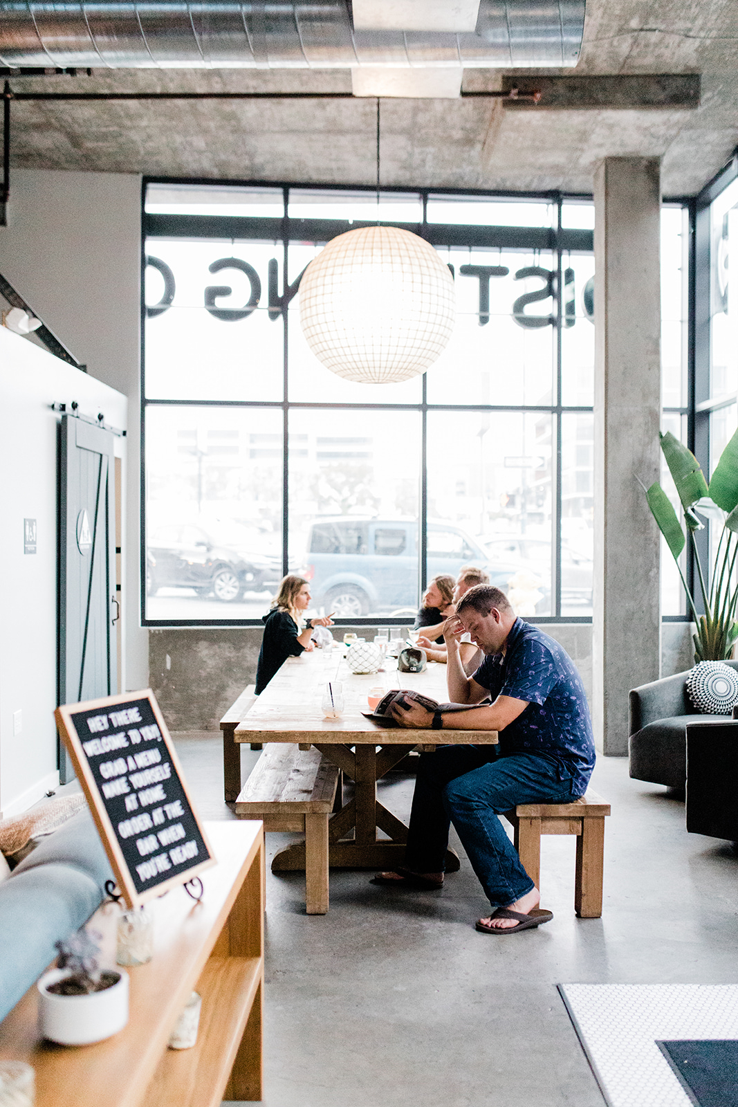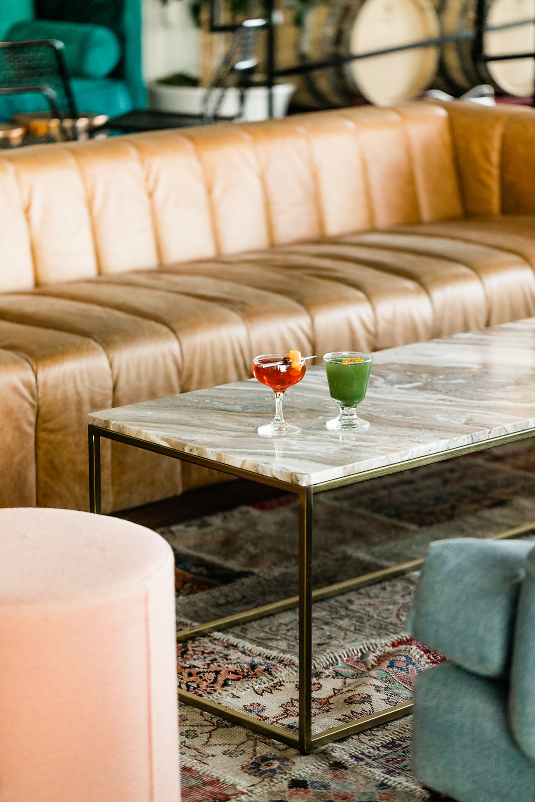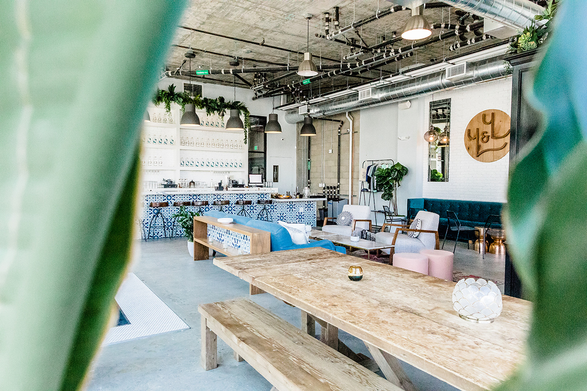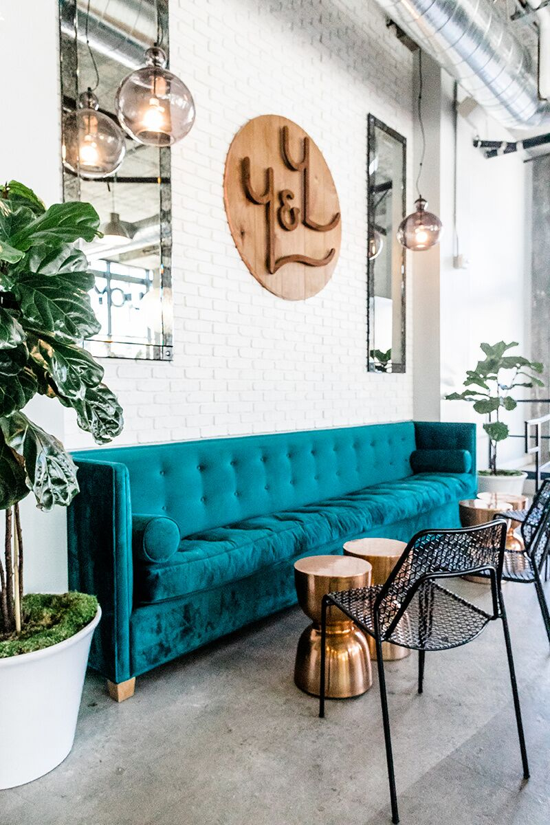 Salvaged wood, whitewashed brick, exposed concrete, plush velvet, denim linen, copper and marble accents come together to create a fresh, unique and Insta-worthy atmosphere.